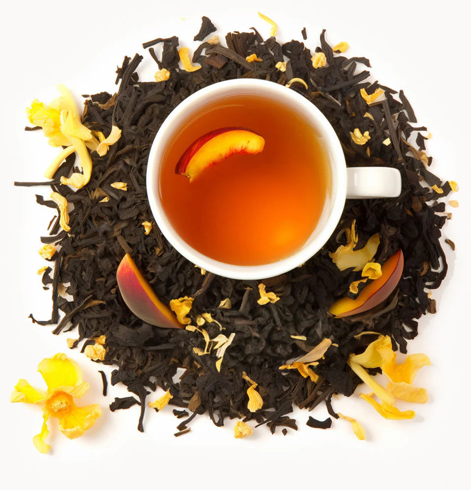 Imagine savoring a bowl of ripe, juicy peaches topped with a cloud of fresh whipped cream — now captured in your teacup. This luxurious blend combines smooth black tea with papaya pieces, peach slices, and blackberry leaves, all delicately accented by calendula, jasmine, marigold, and sunflower petals. The result is a cup that feels like summertime in bloom: vibrant, creamy, and irresistibly refreshing. Perfect hot or iced, it’s a little sip of sunshine any time of year.